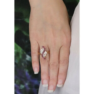 10k Yellow Gold Natural Ruby and Diamond Ring Size 6 3/4 Cluster Ring Waterfall