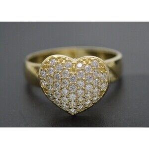 10k Yellow Gold Real Solid Women Heart Shape Stone Ring All Sizes 3.1gr 11.6mm