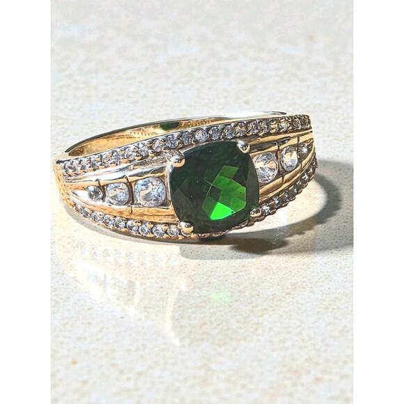 10k Yellow Gold Ring 1.42ct Square Cushion Chrome Diopside W/.57 Zircon Size 8