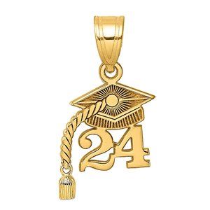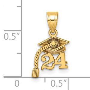 10k Yellow Gold Small Graduation Charm 24, Year 2024 Cap w Dangling Tassel