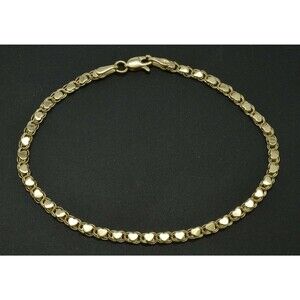 10k Yellow Solid Gold Mirrored Heart Link Chain Charm Reversible Bracelet 7''-8'