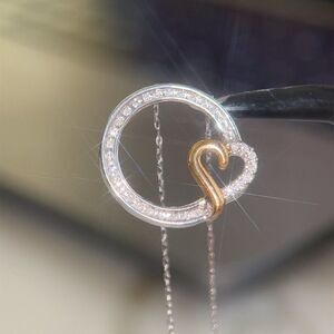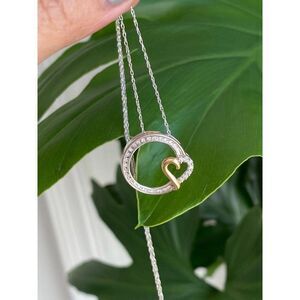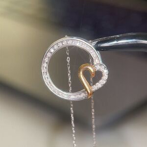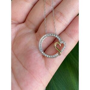 Real 10KT White Gold Necklace with Yellow Gold Heart Pendant Necklace , NOT GOLD PLATED OR GOLD FILLED.