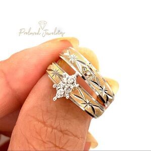 Real 10KT Yellow/White Gold Ring with Small Diamonds on the Engagement Ring and 3 Small Diamonds on the Band As Well, NOT GOLD PLATED OR GOLD FILLED.
