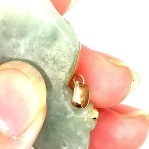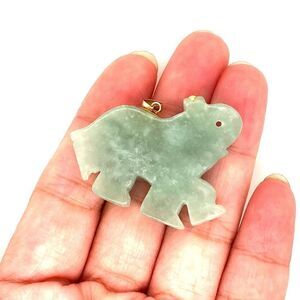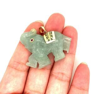 Real 10k Yellow Gold Trim Jade Elephant Pendant with Ruby Eye, NOT GOLD PLATED OR GOLD FILLED.