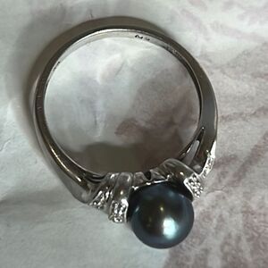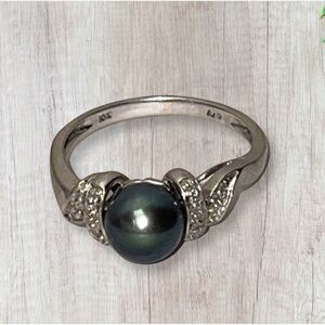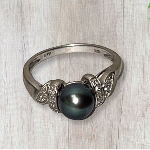 10k White Gold 9mm Grey Tahitian Pearl and Diamond Ring