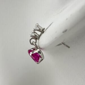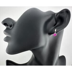 Pretty bright pink heart shaped sapphire dangle earrings. 10kt White Gold.