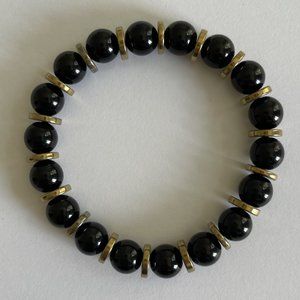 10mm Black Obsidian with Gold Hematite Spacer Crystal Round Stretch Bracelet