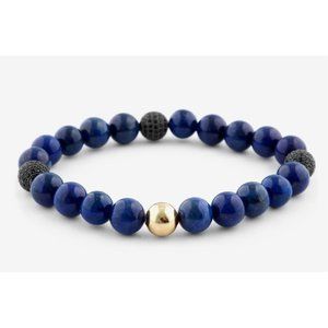 10mm Blue Lapis Lazuli with CZ Black Crystal Ball Stretch Bracelet