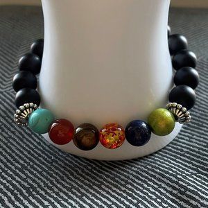 Handcrafted Grade A 10mm Chakra and Black Matte Onyx Gemstone Stretch Bracelet