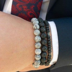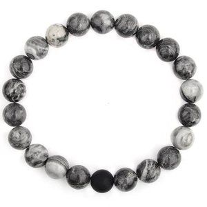 10mm Polished Grey Map Jasper Matte Onyx Natural Stone Bead Stretch Bracelet