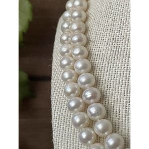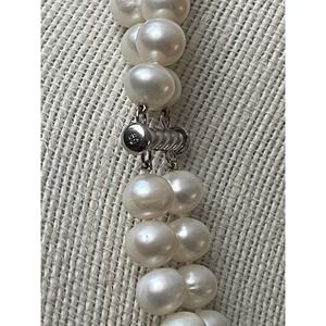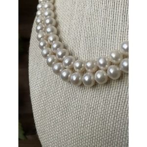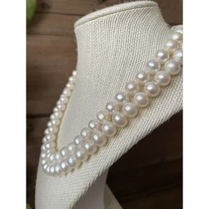 Gorgeous Double strand white pearl necklace with a 925 sterling silver clasp. Length is 17” and the pearls are 10mm.