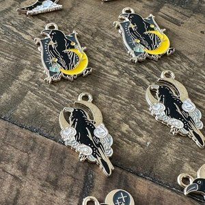 10pc Halloween Raven Charm Set - Moon Skull - Raven Skull