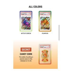 The 10x GradedGuard Trick or Treat PSA Sealed Box is a versatile display case designed for standard-sized graded cards. With a vertical display stand and a capacity for 10 cards, this multicolored box is perfect for showcasing your trading card collection. Manufactured in the United States, this collapsible case is ideal for collectors looking for a secure and organized way to display their valuable cards.