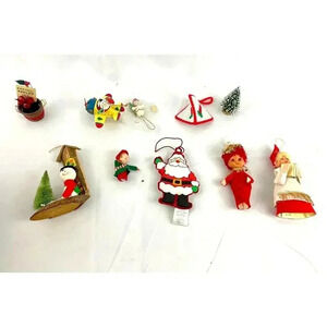 10x VTG Holiday Ornaments Christmas Snowman Santa Plane Dolls Decor 1990s