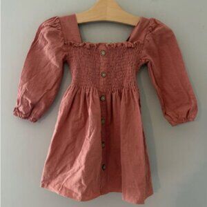 reverie threads girl! smocked pink shirt dress with long-sleeves and wooden buttons