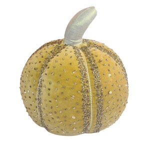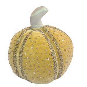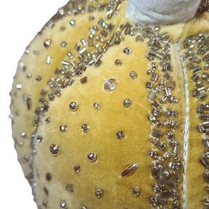 11" Beaded Velour decorative Pumpkin Mustard Gold Thanksgiving Halloween
