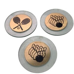 11 Bowling Tennis Gymnastics 2" Gold Toned Metal Ornament Circles Craft Supply