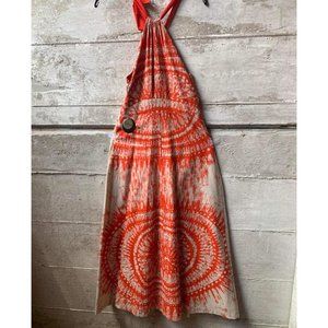 11. Eva Franco Halter Mini Orange and Cream Breathable Summer Dress