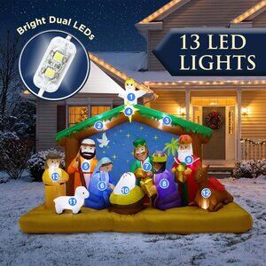 A Special Moment: Bring joy and remind everyone the special reason for the season with this glowing 8-foot Christmas inflatable Nativity Scene. This scene depicts the birth of Jesus, a special moment for believers, with Mary, Joseph and the three Wise Men, as an angel watches over while cattle and sheep look on. This special nativity scene brings hope to people and warmth to the world while LED lights illuminate this beautiful display.
