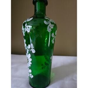Elevate your home decor with this stunning 11-inch hand-painted glass bottle! Each bottle is carefully hand-blown and painted with intricate details, making it a unique work of art. The vibrant colors and elegant design will add a touch of sophistication to any room. Perfect for displaying flowers, holding decorative items, or simply as a standalone piece. Perfect condition!