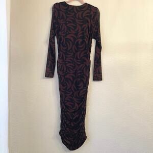 11 Honoré Ruched Midi Dress 1X Mesh Abstract Zebra Animal Print Wedding Cocktail
