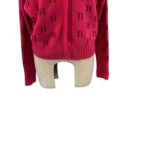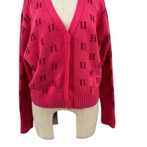 11 Honore Angie Cardigan Sweater 11h Monogram Print Pink Plus Size 1 14-16
