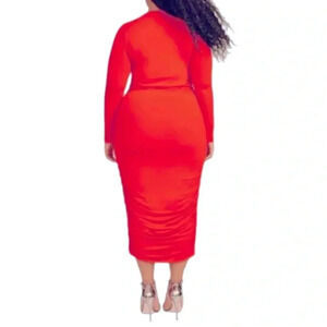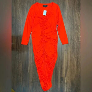 11 Honore Dress Size 2X Plus Tomato Red Ruched Holiday Bodycon Stretchy Knit NWT