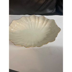 11” Lenox Oval Scalloped Fluted Footed Serving Dish Bowl Gold Trim from the Symphony line. Made in USA. Gold Backstamp. Measures approx. 10 7/8" long and 7 3/8" wide. Excellent pre-owned condition. No chips, cracks, or breaks. Ships free with UPS or USPS depending on buyer's location.