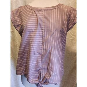 ▪︎DESCRIPTION: Mauve and white striped top with cuffed cap sleeves.  Ties at the waist
