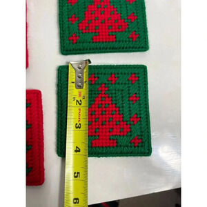 11 Pcs Handmade Christmas Tree Cross Stitched Needlepoint Coasters 4"x4"