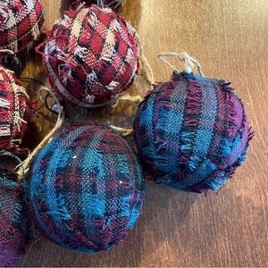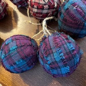 11 Primitive TARTAN PLAID Fabric RAG BALLS Christmas Ornaments Farmhouse