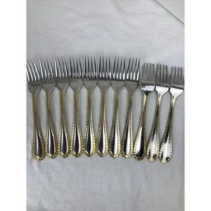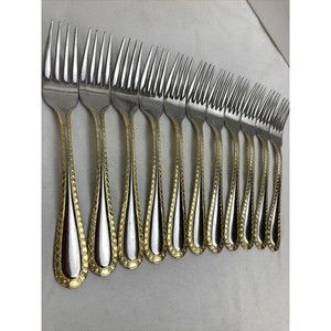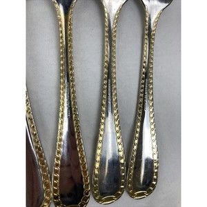 Retroneu GOLD ACCENT Chain 7 dessert fork 18/8 Korea Stainless Flatware-Great Quality. Preowned. Normal scratches from normal use might be seen These are great quality and very pretty. I have the whole dinnerware sets please check my other listings if you are interested thank you