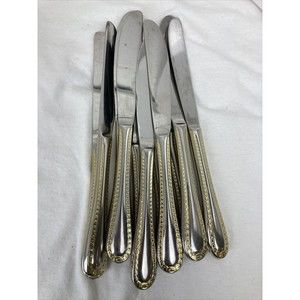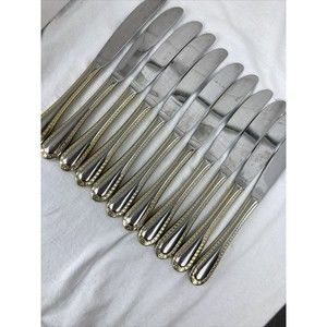 11 Retroneu GOLD ACCENT Chain 9 1/2” Dinner Knife 18/8 Korea Stainless Pre owned