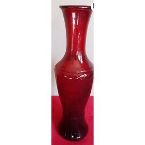 Ruby Red Glass Vase Art Deco Tall Retro Rope Twisted Detail 11" x 2.5”