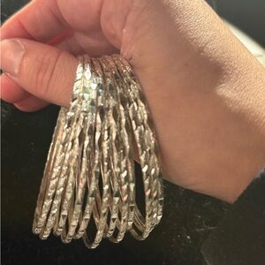 Enhance your style with this elegant silver bangle set. Perfect for any occasion, these bangles add a touch of sophistication to your look. Eleven bracelets sold together