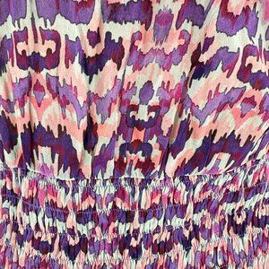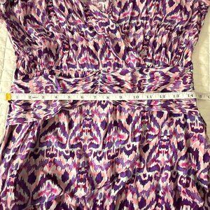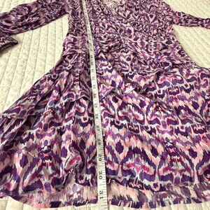 11 Uptown Dress Purple Multi-Color Abstract Print Long Sleeve, S, 64% Cupro 36%