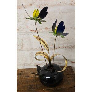 11" Vintage Marie Jaxon Originals Metal Flower Arrangement In Black Vase