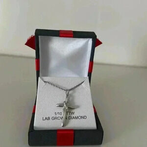 1/10 CT. T.W. Lab Grown White Diamond Sterling Silver Cross Pendant Women’s Necklace. Orig box included. Gently used, excellent condition.