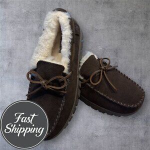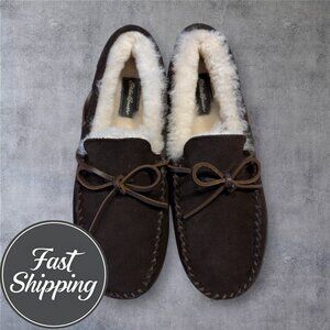 $110 EDDIE BAUER REAL SHEARLING/SUEDE SLIP ON LOAFER SLIPPERS MENS SIZE 10