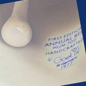 Zoom in on photos and read below for details. You will receive the exact signed porcelain collectibles shown (figurine and bell). Appearance may vary with lights, background, or screen. May present with typical vintage wear or natural artisan imperfections. Both present in nice condition with no crazing, chips, cracks, or repairs. Goebel boxes with typical wear. Original personal purchase note still inside the bell. A lovely "Let's Sing" combo for your vintage Hummel collection. Enjoy!