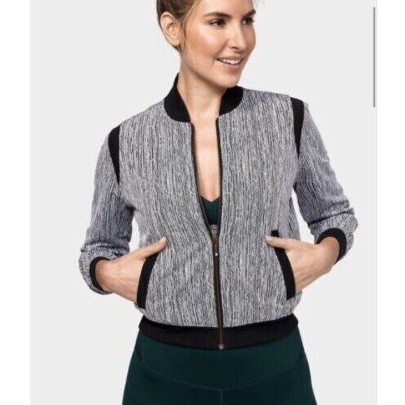 $110 MANDUKA Bomber Jacket Gray Dunes Jacquard Stretch Designer Coat Size M