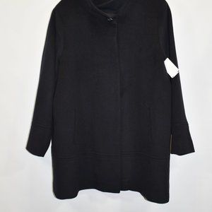 $1100 FLEURETTE FUNNEL NECK 100% WOOL COAT Luxury PLUS SIZE BLACK 24W