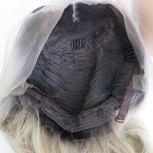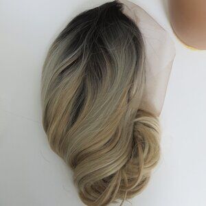 (#111) Hair blend blonde highlight platinum blonde layered wave wig