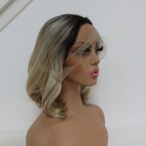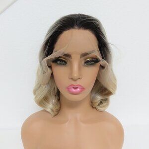 Human Hair Lace Wigs Platinum Blonde Layered 12" Shoulder Length Wavy Wigs