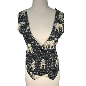 111 Main Dalmations Vest 100% Cotton Black & White Size Large Button Up