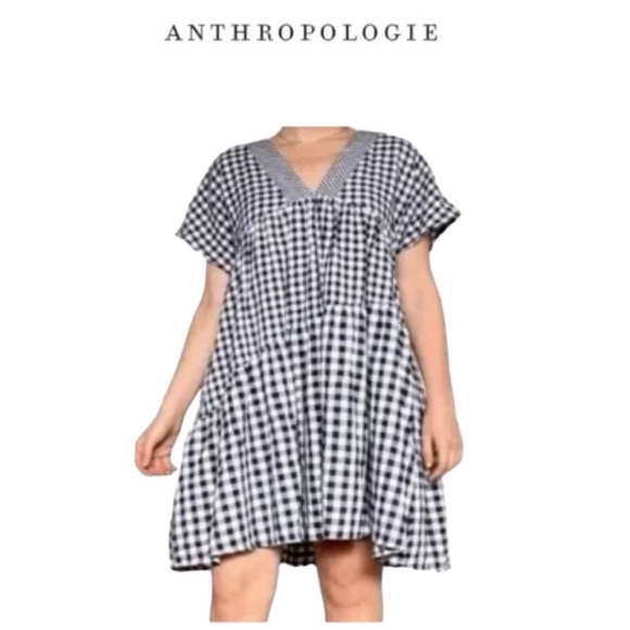 11.1 Tylho Anthropologie V-Neck Gingham Swing Dress NWT