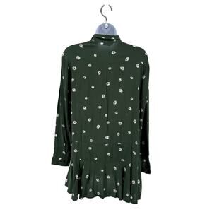 Women's Ladybug Button-Up Blouse by 11.1 Tylho, US Size S, Green with White Ladybug Print, Long Sleeves, Collared neckline, Regular fit, Peplum Hem, Classic, Office, Everyday, Casual Top, Lightweight, Officewear, All Day Comfort, Summer top.