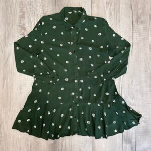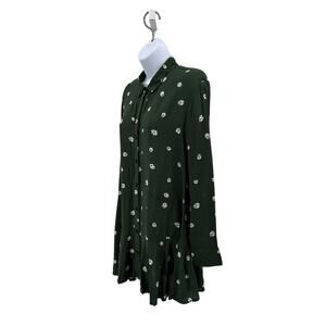 11.1 Tylho Anthropology Green Ladybug Button Blouse Long Sleeve WMN S Collared