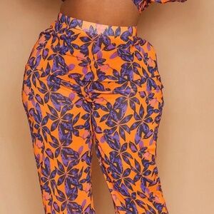 1110 NWT PrettyLittleThing Colorful Orange Print Beach Flares - Size 16