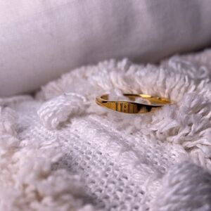 This beautiful lucky gold ring can be stacked with other dainty bands or worn alone for a classy, minimalist look.